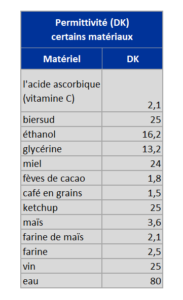 Dans le tableau suivant, vous pouvez voir quelques exemples de constante diélectrique de différents produits.
